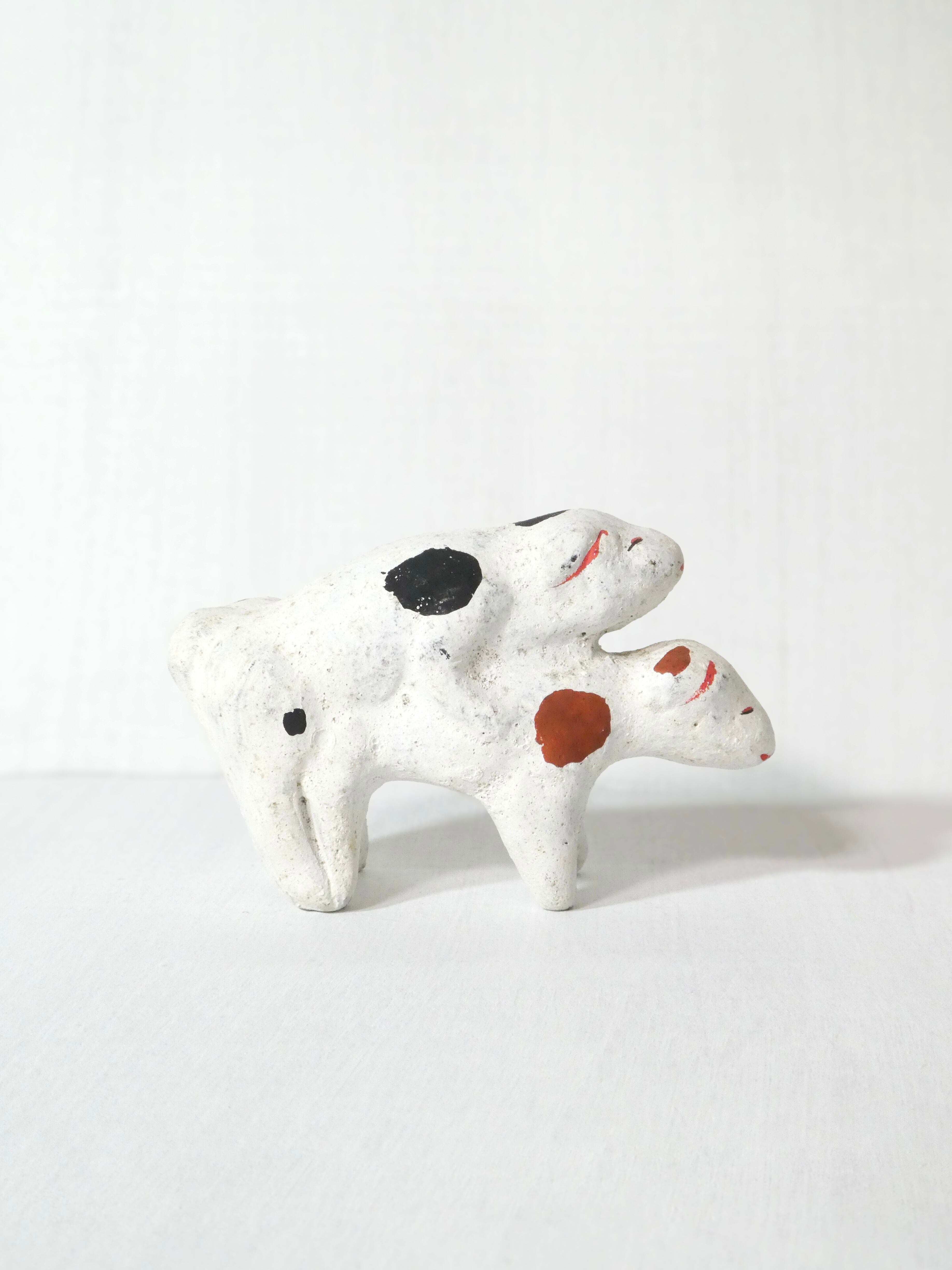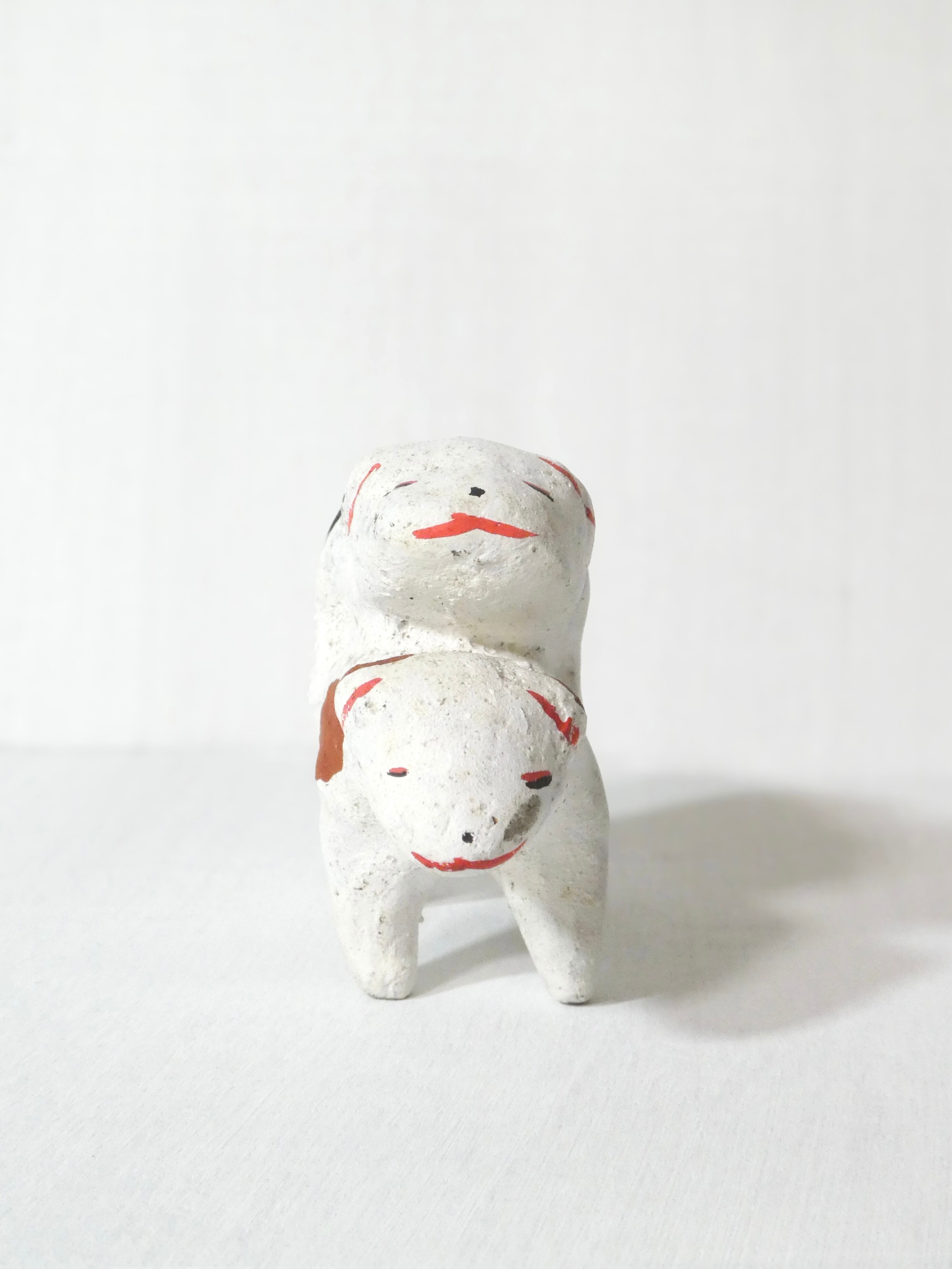 2匹の犬が重なりあった土人形